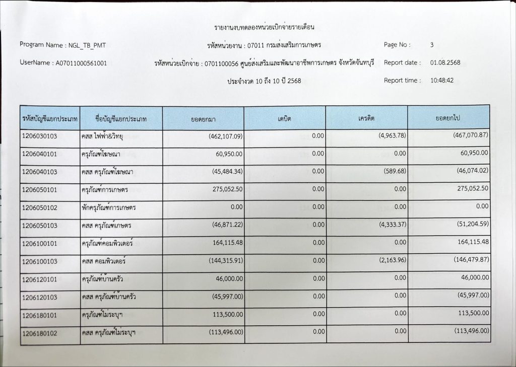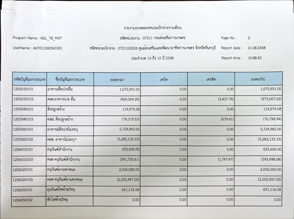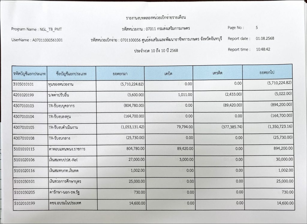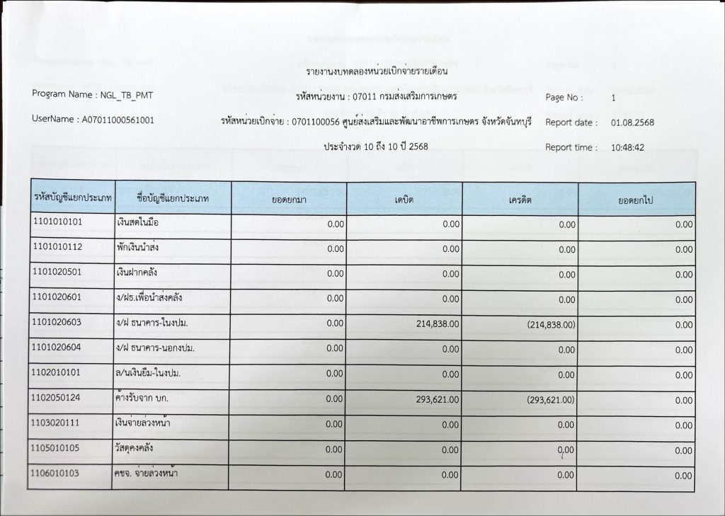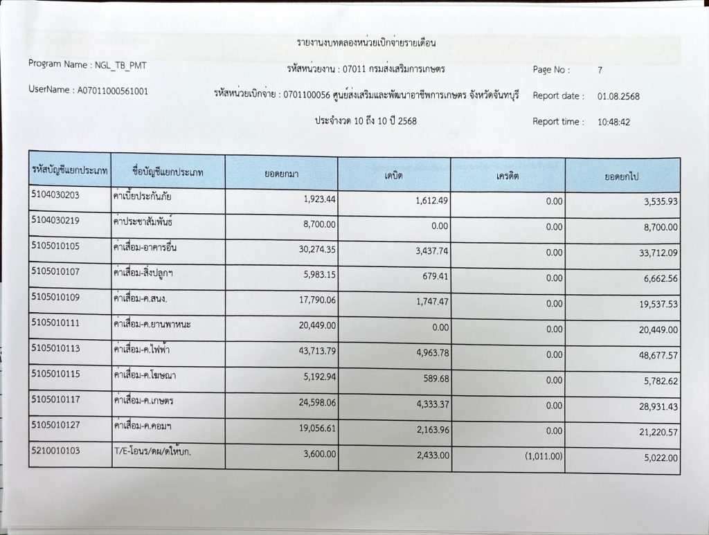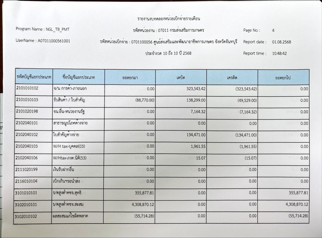 รายงานงบทดลองประจำเดือนกรกฎาคม 2568