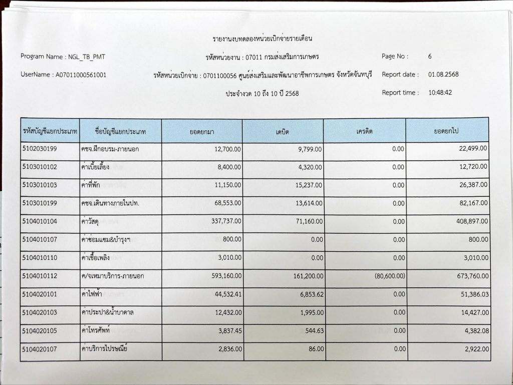 รายงานงบทดลองประจำเดือนมิถุนายน 2568