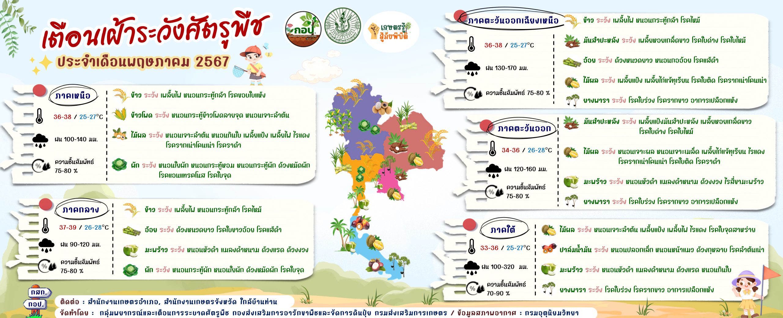 เตือนเฝ้าระวังศัตรูพืช ประจำเดือนพฤษภาคม 2567