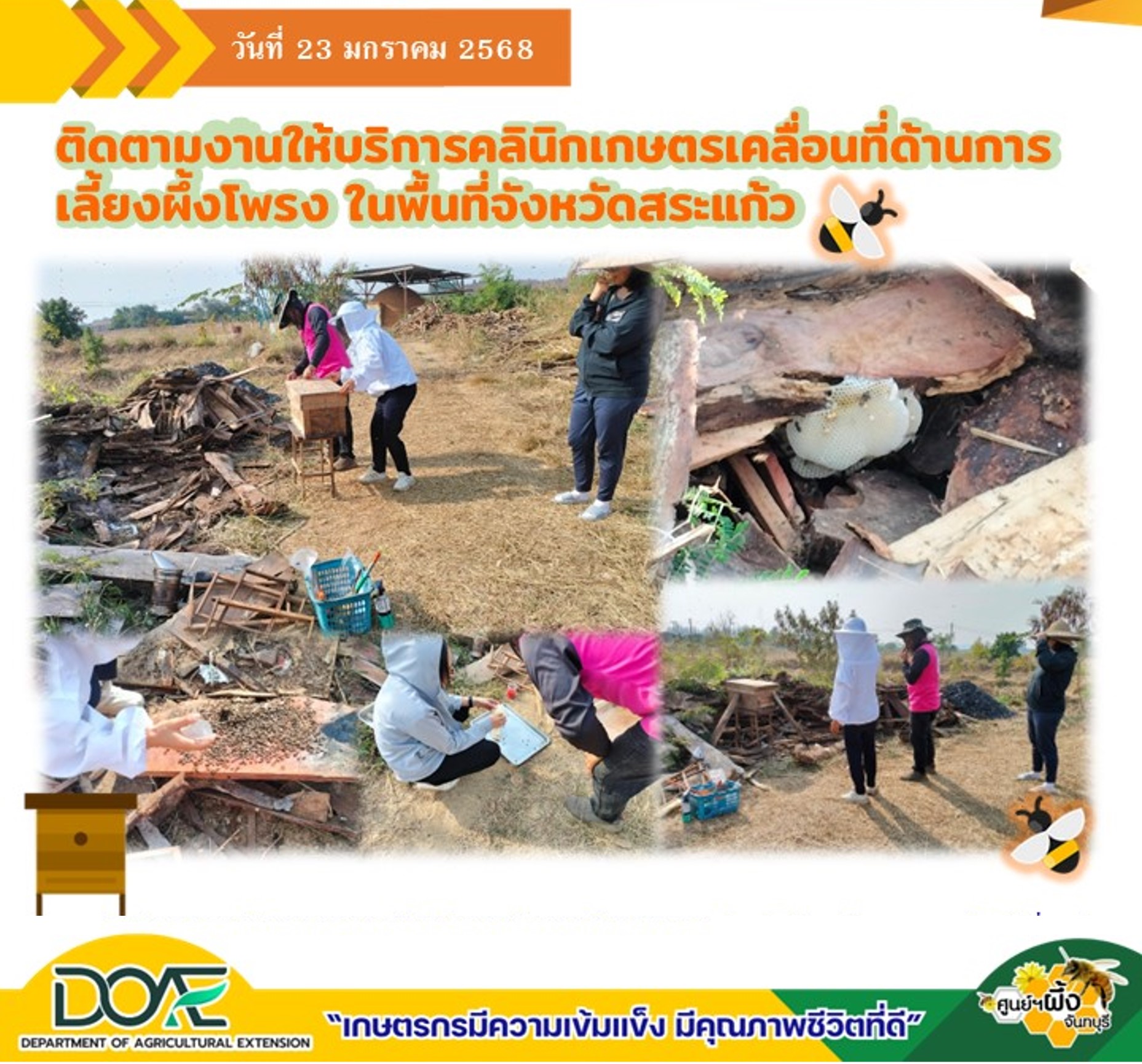 ติดตามงานให้บริการคลินิกเกษตรเคลื่อนที่ด้านการเลี้ยงผึ้งโพรง ในพื้นที่จังหวัดสระแก้ว Posted on 23 มกราคม 202527 มกราคม 2025 by adminPLA