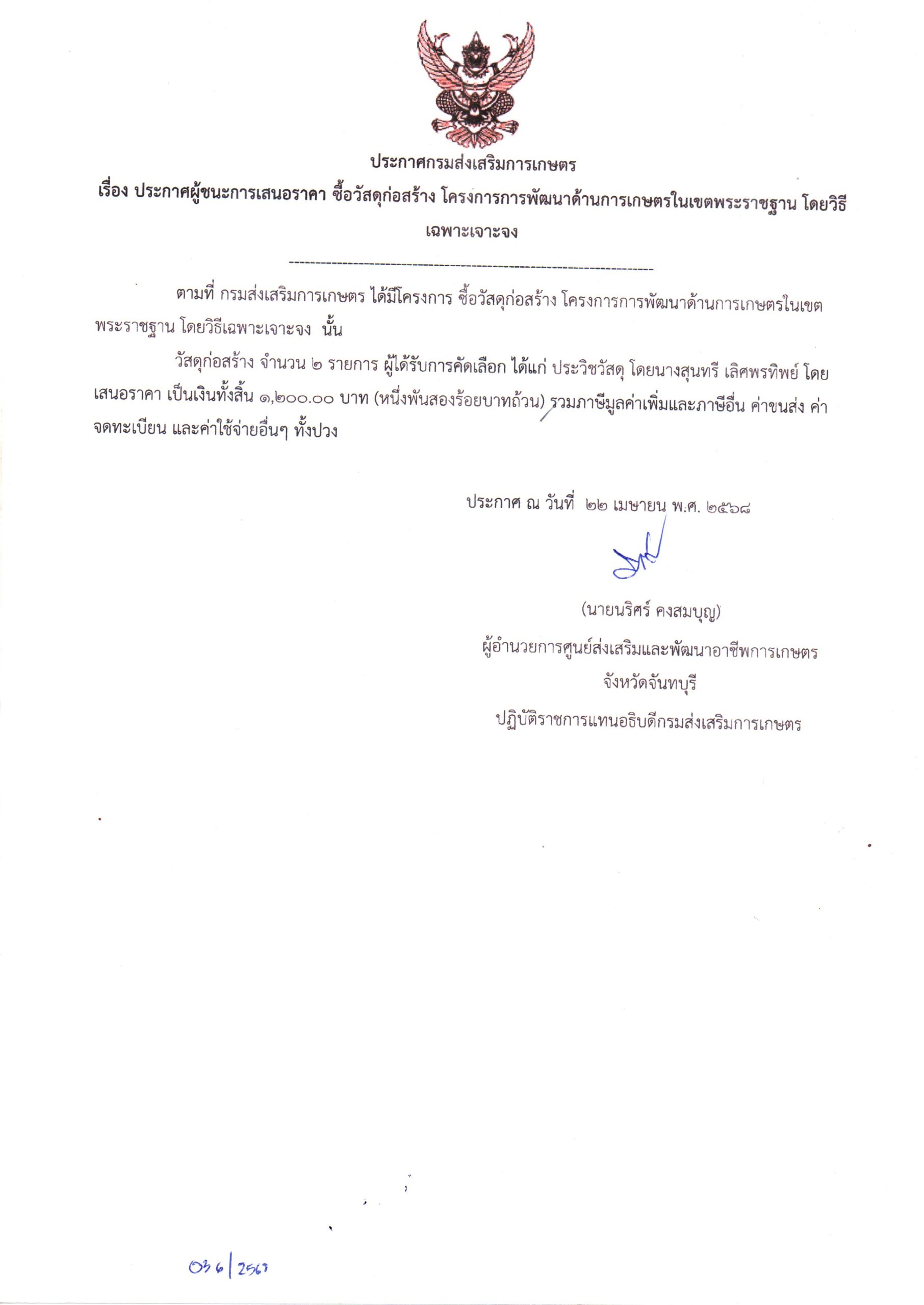 ซื้อวัสดุก่อสร้าง โครงการการพัฒนาด้านการเกษตรในเขตพระราชฐาน โดยวิธีเฉพาะเจาะจง เป็นเงิน 1,200.00 บาท Posted on 22 เมษายน 202529 เมษายน 2025 by adminPLA