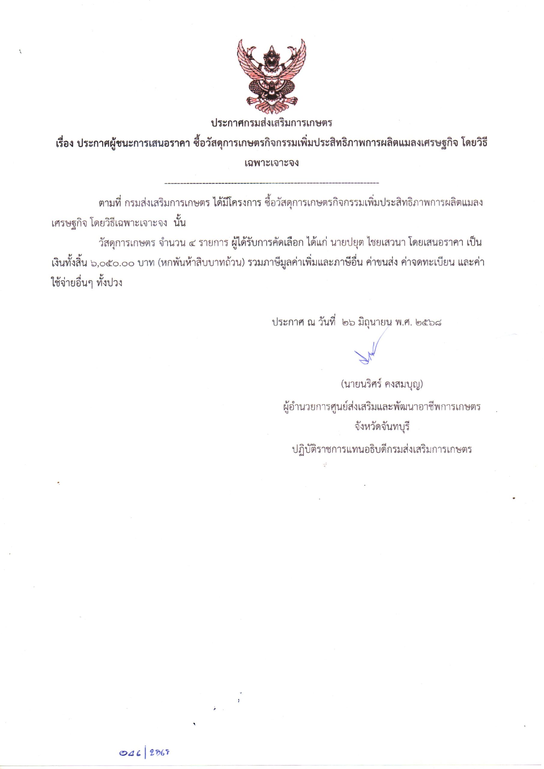 ซื้อวัสดุการเกษตร กิจกรรมเพิ่มประสิทธิภาพการผลิตแมลงเศรษฐกิจ โดยวิธีเฉพาะเจาะจง เป็นเงิน 6,050 บาท Posted on 26 มิถุนายน 20253 กรกฎาคม 2025 by adminPLA