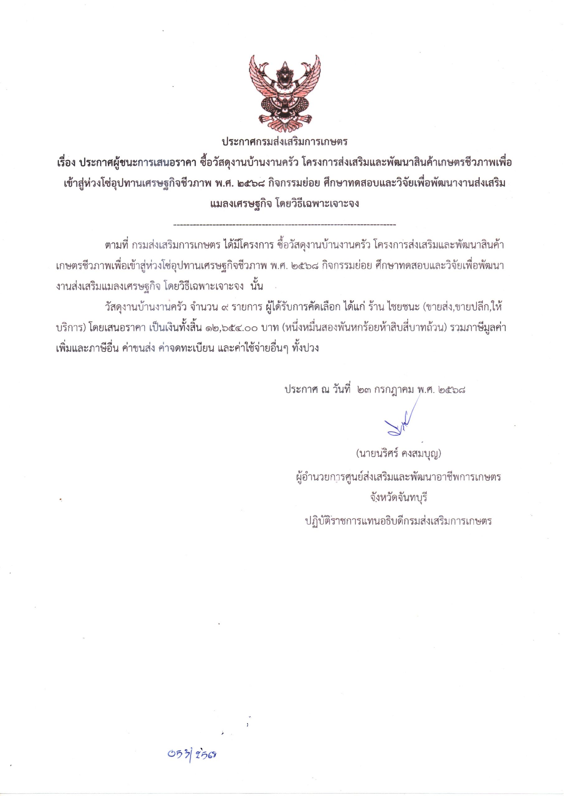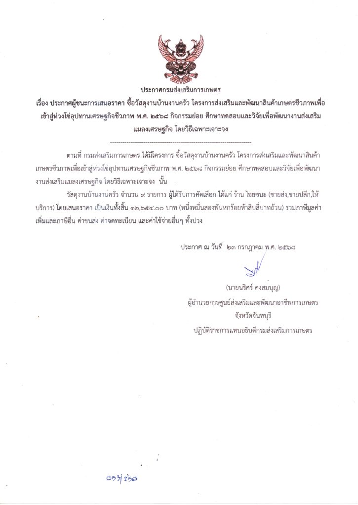 ซื้อวัสดุงานบ้านงานครัว โครงการส่งเสริมและพัฒนาสินค้าเกษตรชีวภาพเพื่อเข้าสู่ห่วงโซ่อุปทานเศรษฐกิจชีวภาพ พ.ศ. ๒๕๖๘ กิจกรรมย่อย ศึกษาทดสอบและวิจัยเพื่อพัฒนางานส่งเสริมแมลงเศรษฐกิจ โดยวิธีเฉพาะเจาะจง เป็นเงิน 12,654.00 บาท Posted on 23 กรกฎาคม 20252 กันยายน 2025 by adminPLA