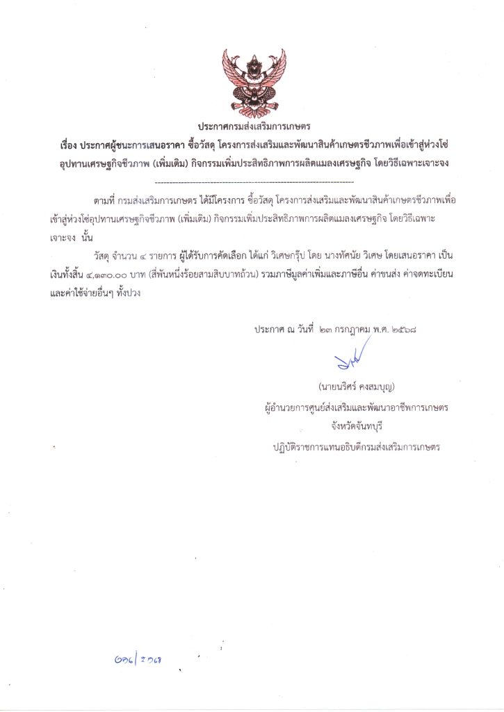 ซื้อวัสดุ โครงการส่งเสริมและพัฒนาสินค้าเกษตรชีวภาพเพื่อเข้าสู่ห่วงโซ่อุปทานเศรษฐกิจชีวภาพ (เพิ่มเติม) กิจกรรมเพิ่มประสิทธิภาพการผลิตแมลงเศรษฐกิจ โดยวิธีเฉพาะเจาะจง เป็นเงิน 4,130.00 บาท Posted on 23 กรกฎาคม 20252 กันยายน 2025 by adminPLA
