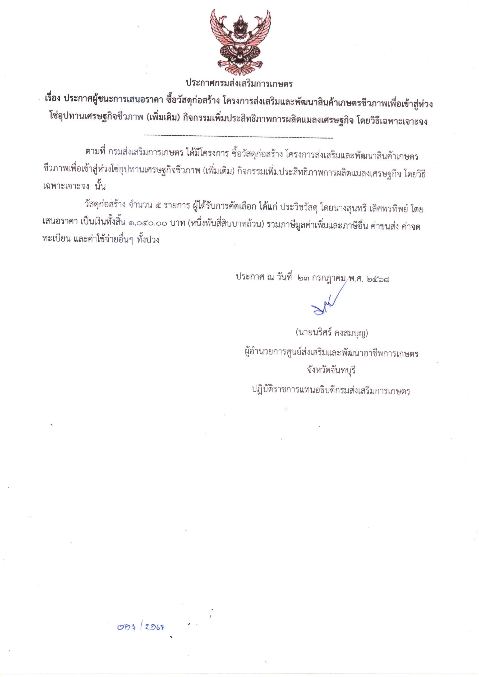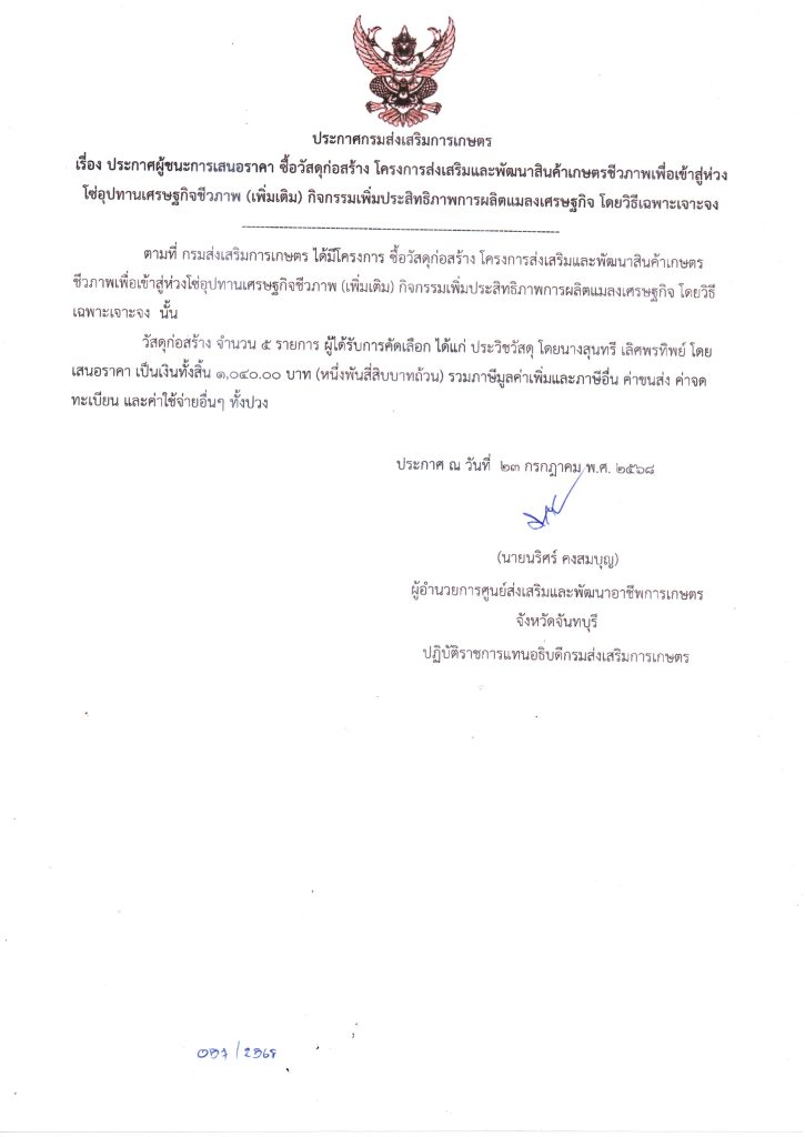 ซื้อวัสดุ โครงการส่งเสริมและพัฒนาสินค้าเกษตรชีวภาพเพื่อเข้าสู่ห่วงโซ่อุปทานเศรษฐกิจชีวภาพ (เพิ่มเติม) กิจกรรมเพิ่มประสิทธิภาพการผลิตแมลงเศรษฐกิจ โดยวิธีเฉพาะเจาะจง เป็นเงิน 1,040.00 บาท Posted on 23 กรกฎาคม 20252 กันยายน 2025 by adminPLA